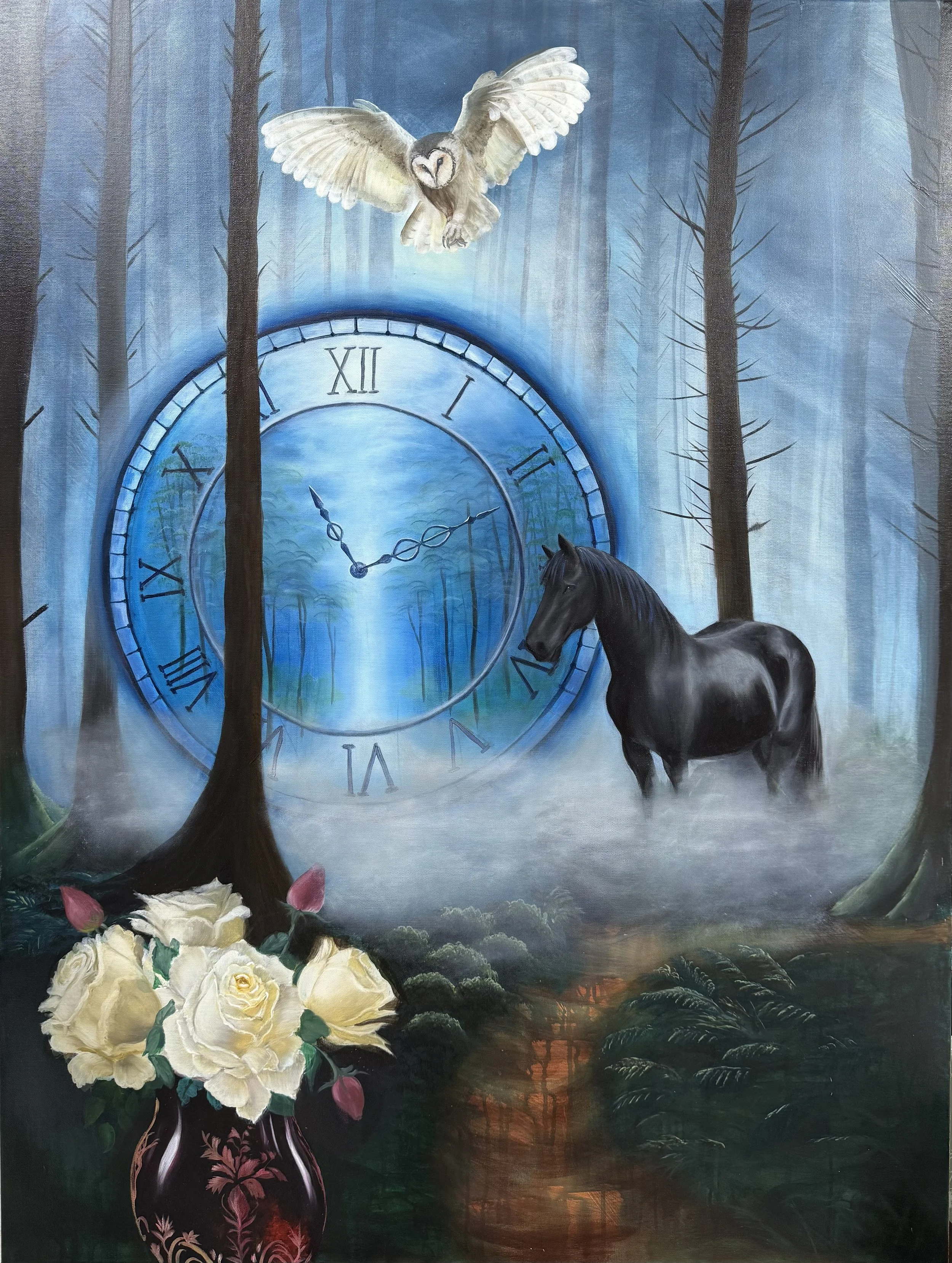This space is shaped by creativity, stillness, and the companions who share my days, a gentle reminder to pause, breath, and be present. Here, art becomes a way of noticing again: the curve of light, the softness of fur, the rhythm of hooves in the field. My work is an invitation to slow down, to feel deeply, and to find depth in simplicity and presence in the everyday. Art is not a luxury, but an invitation to experience the benefits of just being.